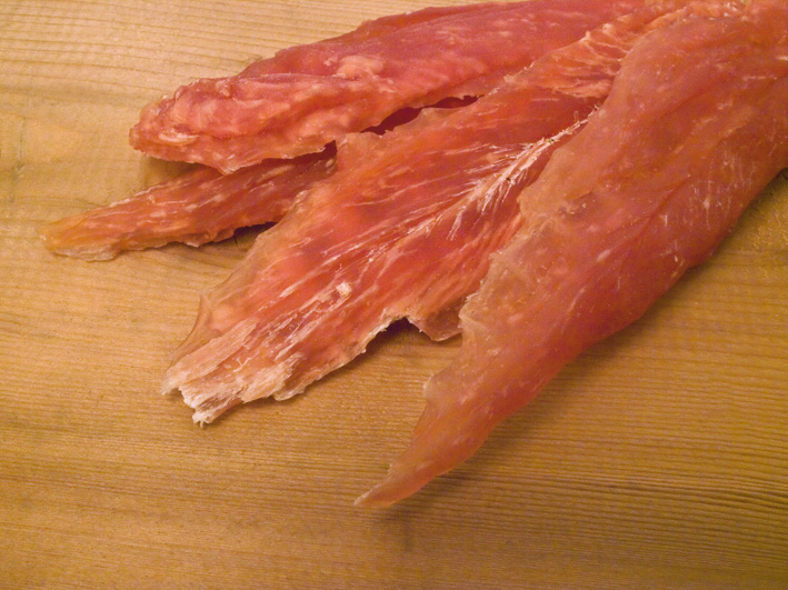 Erstklssiges Hühnerbrustfilet mit viel Geschmack, aber wenig Fett. Kleine Portionen - perfekt für die Belohnung zwischendurch. |