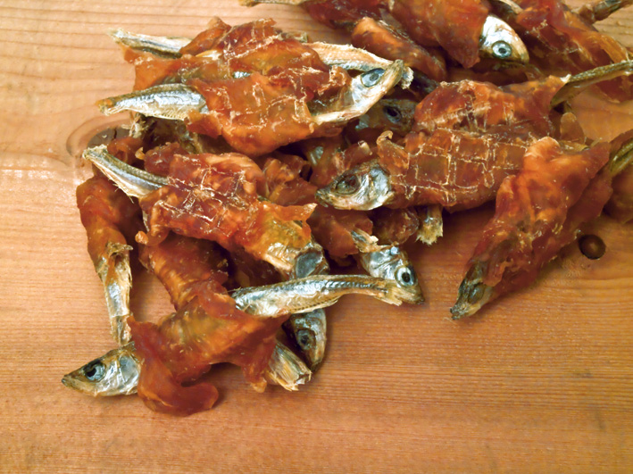 Für die Gourmets unter den Hunden. Hochwertiges, luftgetrocknetes Hühnerbrustfilet in Kombination mit Fisch - eignetlich unwiderstehlich! |