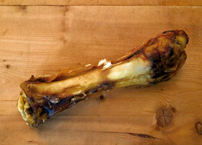 Eine besondere Spezialität ist wohl unser feiner Knochen vom Kalb. Die Hunde werden wissen warum sie der Geschmack so nachhaltig begeistert. Länge ca. 30 cm. |